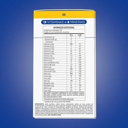 CARACTERÍSTICAS – Multivitamínico Lavitan AZ Original Com 90 Comprimidos Suplemento alimentar em comprimidos revestidos possui em sua formulação cálcio e