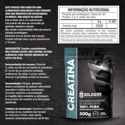| Aditivos | creatina monoidratada, maltodextrina, acidulante ácido cítrico, corante clorofila, aromatizante e edulcorante sucralose. NÃO CONTÉM LACTOSE. NÃO CONTÉM GLÚTEN. |