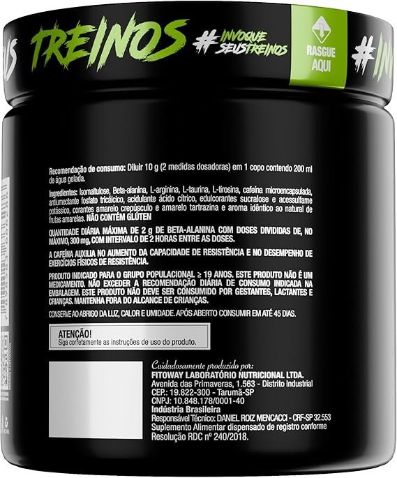 FTW Pré-Treino Diabo Verde em Pó com Cafeína, Aminoácidos Beta‑Alanina e Arginina para Treinos e Atividades Físicas – Pote 300 g (Frutas Amarelas)