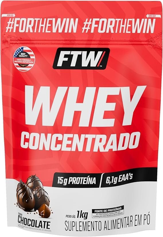 FTW Whey Concentrado com Proteína Concentrada WPC, Suplemento Alimentar em Pó com 15g de Proteína por Porção, Rico em Aminoácidos Essenciais, Sem Glúten – Refil 1KG (Chocolate)