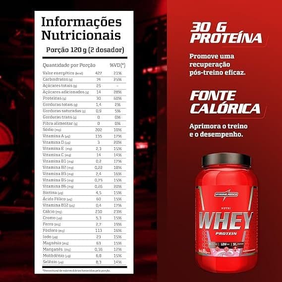 Integralmédica Nutri Whey Protein Morango – Pote de 900 g – Super Mass Gainer
