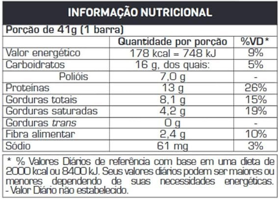 Aditivos ‎Cobertura sabor chocolate ao leite, proteína concentrada do soro do leite, recheio de ganache sabor caramelo zero adição de açúcar, caseinato de cálcio, colágeno hidrolisado, óleo de girassol, polidex