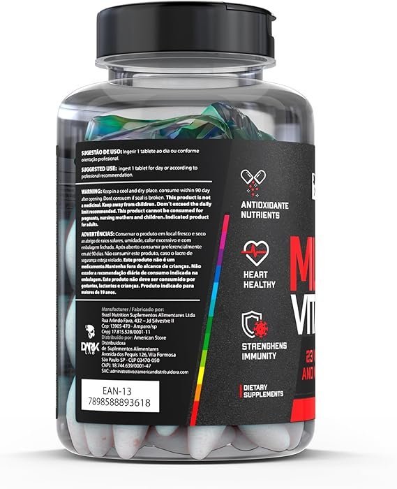 O Multivitamínico Dark Lab é uma combinação de vitaminas e minerais cuidadosamente selecionados para complementar uma rotina equilibrada. Os nutrientes presentes são amplamente reconhecidos por participarem de diversos processos no organismo, como o suporte à saúde geral e ao bem-estar. Ideal para quem busca uma alternativa prática para auxiliar na ingestão diária de micronutrientes, especialmente em dietas com possíveis restrições alimentares ou em estilos de vida agitados.