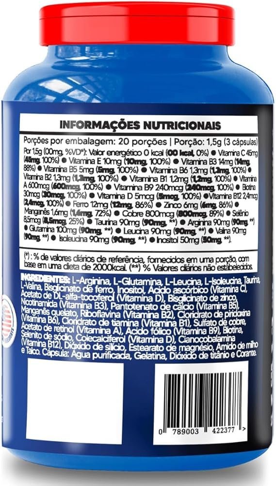 MULTIVITAMÍNICO MAIS COMPLETO DO BRASIL (60 Cáp) – COM BCAA E AMINOÁCIDOS – FÓRMULA AMERICANA – USA SPORT NUTRITION