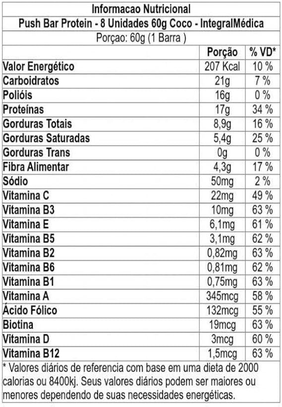 | Nome do produto | Push Bar Protein – 8 Unidades 60G Coco – Integralmédica |