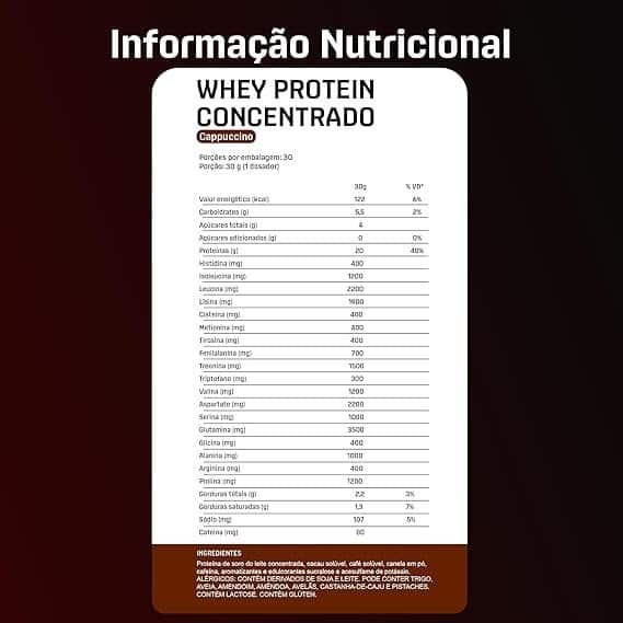 | Nome do produto | WHEY PROTEIN CONCENTRADO CAPPUCCINO – POUCH 1800 g |