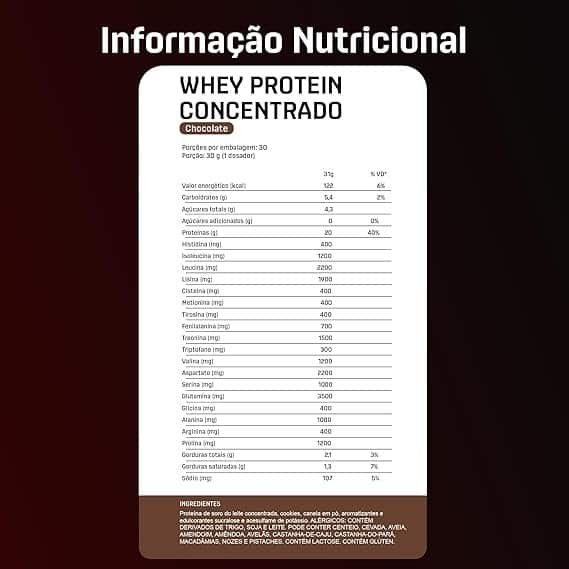 5g de BCAAs; 4,3g de glutamina e 2,5g de leucina, por dose. – O nome diz tudo: Whey Protein Concentrado 100% puro, com transparência total, do nome do produto à lista de ingredientes; – Não contém goma xantana, complexos vitamínicos à base de maltodextrina, espessantes, estabilizantes, conservantes ou qualquer outro ingrediente inferior; – Contém corantes 100% naturais. – Proteína moderna
