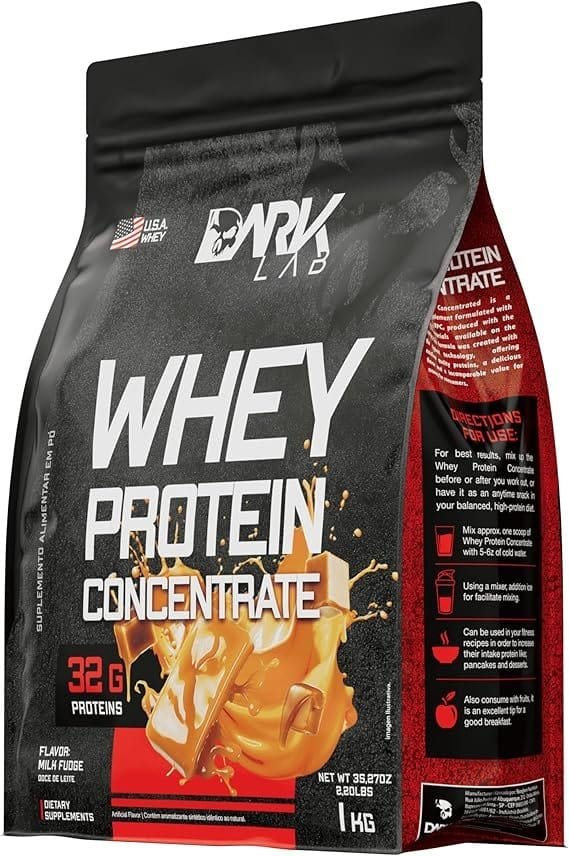 Whey Protein Concentrado Dark Lab, 1kg, Doce de Leite, Proteína Concentrada do Soro do Leite (WPC), Ganho de Massa Muscular, Suporte Nutricional